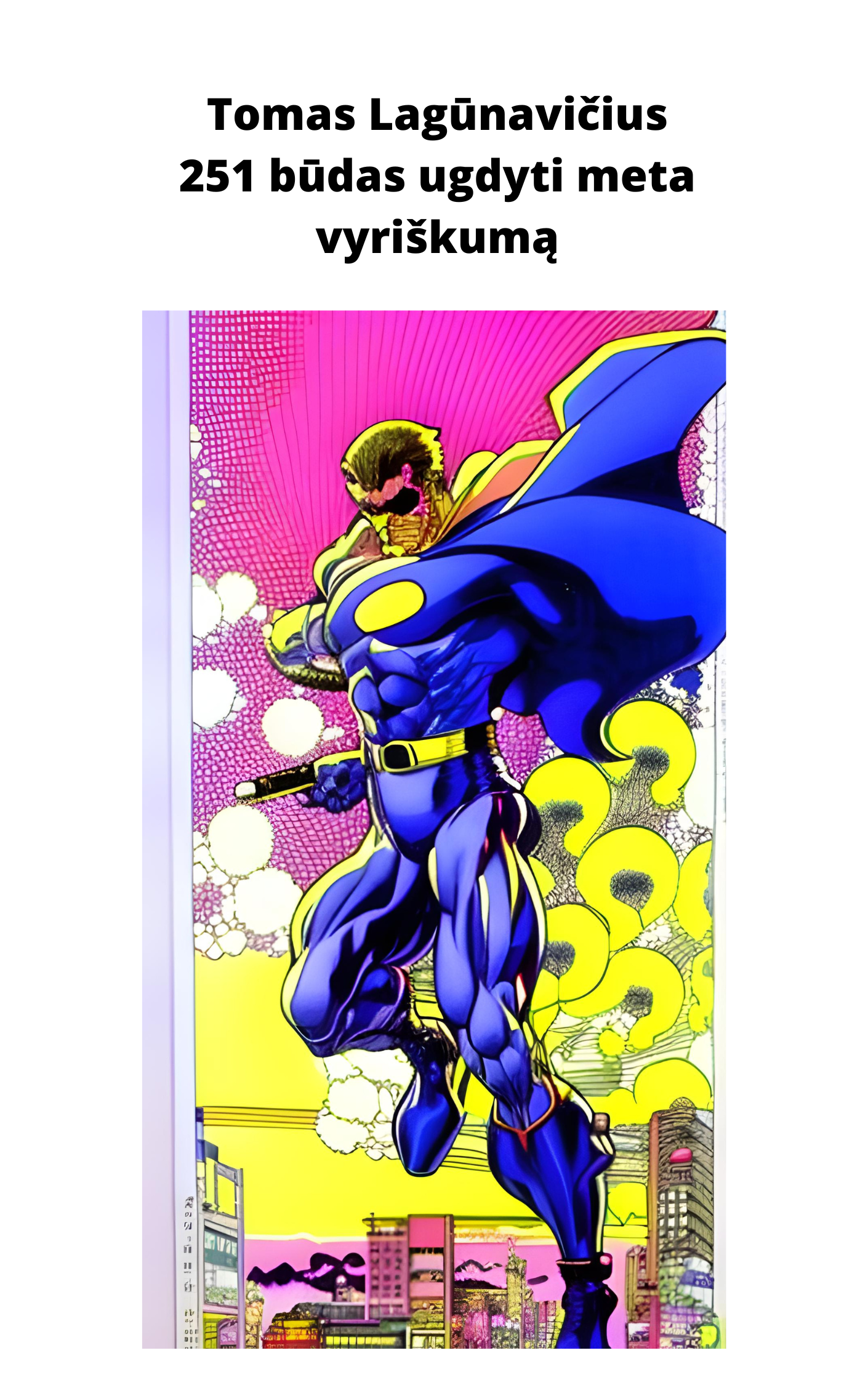 Šioje knygoje atskleidžiu būdus ugdyti vyriškumą tiek vyrams, tiek moterims. Nes šiuolaikiniame liberaliame pasaulyje skirtumai tarp vyrų ir moterų nyksta. Todėl būtina mokytis tiek vyriškų, tiek moteriškų strategijų visoms lytims, nes priklausomai nuo situacijos gali būti naudojamos tinkamiausios. Knyga pragmatiška. Ji skirtas žmonėms, kurie daro daugiau nei galvoja, bet nori patirti naujų dalykų, o ne paskęsti savo praeities prisiminimuose. Jokiu būdu nenoriu primesti savo nuomonės, kad reikia atlikti visus pratimus, bet kuo daugiau jų atliksite iš 251, tuo geriau išmoksite naujų elgesio algoritmų arba kartosite jau žinomus. Taigi, užtenka kalbėti, imkimės reikalo. Išbandykite pirmąjį pratimą.