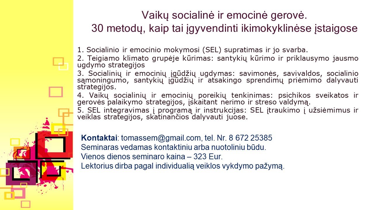 Papildoma informacija el. p. tomassem@gmail.com, tel. 8672 25385